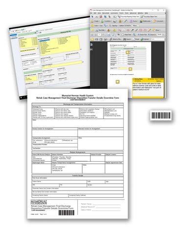 It all begins with email communications; most new forms are assigned numbers by the client of which I create a barcode in Illustrator and then import it as an eps into a master template that I created in In-Design. The barcodes enable them to be scanned into the hospitals system.